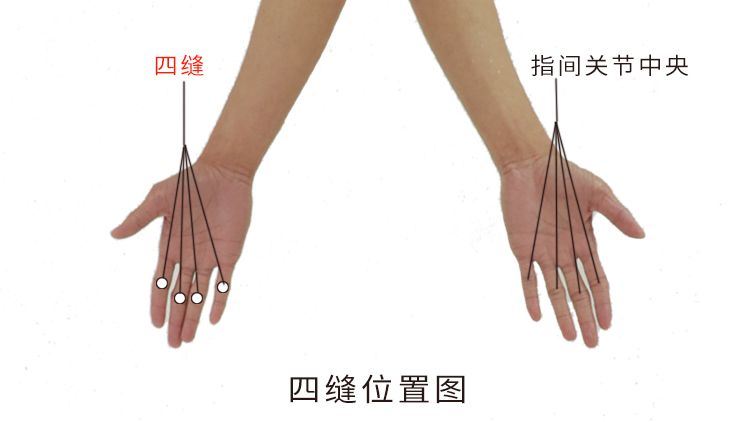 3、《针灸经验方》:“四缝,左右十六穴,在手四指内中节横纹紫脉是。针出血。”