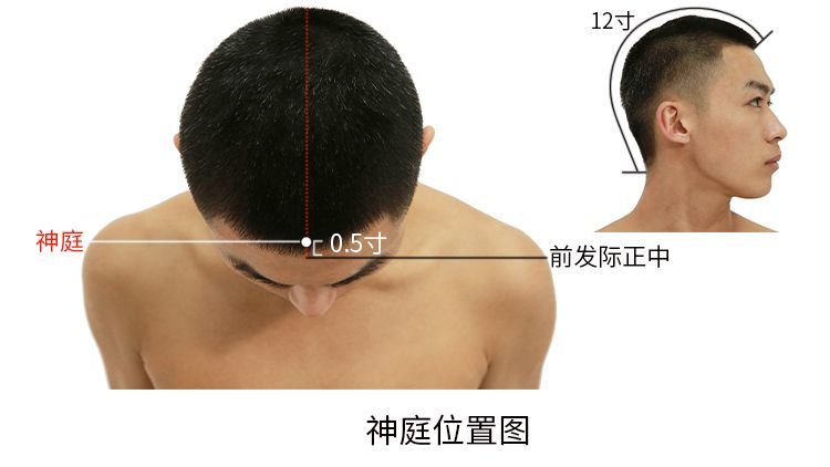 穴在额上发际直鼻上五分处。脑为元神之府,穴居额上,额又称天庭,故名神庭。
