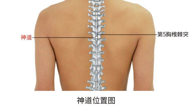 穴在第五椎节下间,平两侧心俞穴,内应心。因心藏神,穴为心气之通道,主治神志疾病,故名神道。
