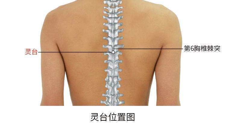 灵台,经穴名。出自《素问·气府论》。别名肺底。属督脉。位于脊柱区,第6胸椎棘突下凹陷中,后正中线上。在腰背筋膜、棘上靭带及棘间钿带中,有第6肋间动脉后支和棘间皮下静脉丛,布有第6胸神经后支的内侧支,深部为脊髓。主治咳嗽、气喘、脊痛、项强、疔疮。向上斜刺0.5-1寸。