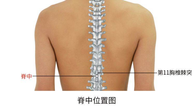 脊指脊椎。穴在第十一椎节下间,正当脊椎二十一节之中部,故名。