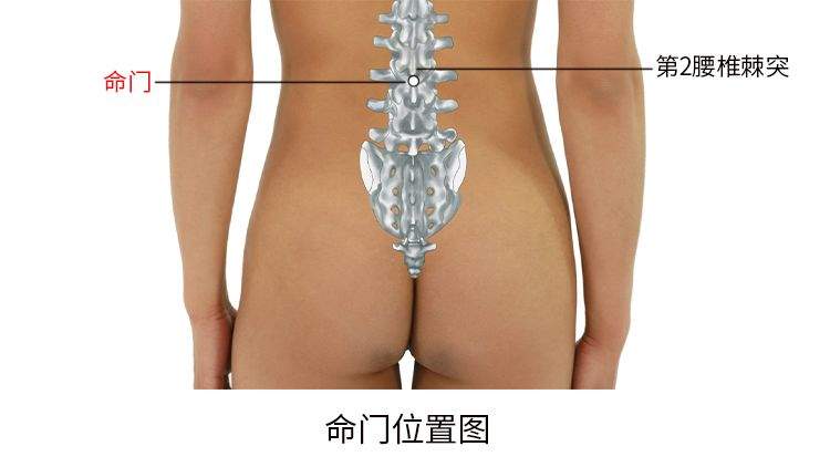 命门,经穴名。出自《针灸甲乙经》。别名属累、精宫、竹杖。属督脉。位于脊柱区,第2腰椎棘突下凹陷中,后正中线上。在腰背筋膜、棘上韧带及棘间韧带中,有腰动脉后支和棘间皮下静脉丛,布有腰神经后支的内侧支。主治腰脊强痛、下肢痿痹、月经不调、赤白带下、痛经、经闭、不孕、遗精、阳痿、精冷不育、小便频数、小腹冷痛、腹泻。直刺0.5-1寸。
