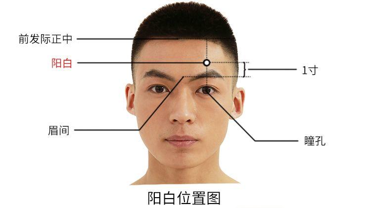 阳白,经穴名。出自《针灸甲乙经》。属足少阳胆经。位于头部,眉上1寸,瞳孔直上。在额肌中,有额动、静脉,布有额神经外侧支。主治前头痛、眼睑下垂、口眼歪斜、目赤肿痛、视物模糊、眼睑瞤动等。平刺0.5-0.8寸。