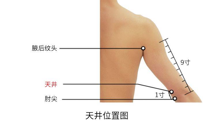 2、《子午流注说难》:“天井乃手少阳三焦经脉所入为合之土穴,穴在肘外大骨后上一寸两筋骨罅间陷中,肘前五寸有穴曰四渎,沟渎归于下流,而天井独居其上,盖有用之水,天一所生,著之井里,以各生化之用,故曰天井。”