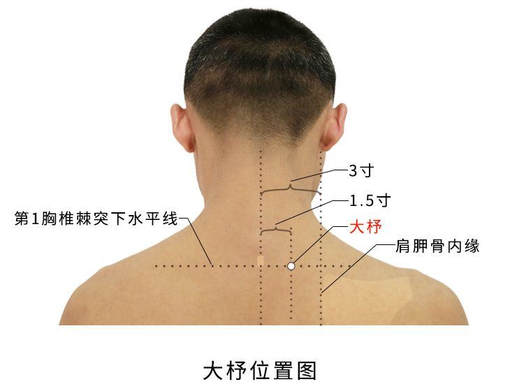 3、《医经理解》:“大杼,在项后第一椎下,两旁相去脊中各二寸。《海论》曰:冲脉者其输上出于大杼,《气穴论》注曰:督脉别络,手足太阳三脉之会,故为经脉之大机杼也。”