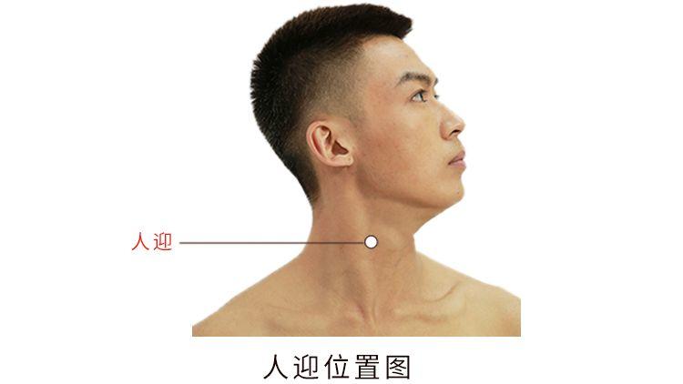 人迎,经穴名。出自《灵枢·本输》。属足阳明胃经。别名天五会、五会。位于颈部,横平喉结,胸锁乳突肌前缘,颈总动脉搏动处。有颈阔肌,在胸锁乳突肌前缘与甲状软骨接触部,有甲状腺上动脉,当颈内、外动脉分歧处,有颈前浅静脉,外为颈内静脉,布有颈皮神经、面神经颈喉结支,深层为颈动脉小球,最深层为交感神经干,外侧有舌下神经降支及迷走神经。主治瘰疬、瘿气、咽喉肿痛、高血压、气喘等病症。直刺0.3-0.8寸,避开颈动脉。