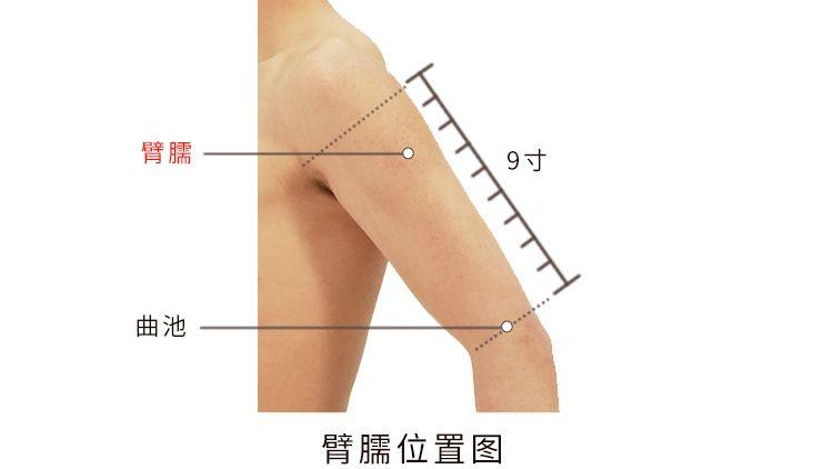简便定位:位于臂部,曲池上7寸,三角肌前缘处。