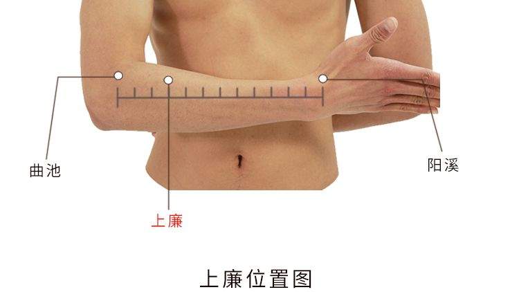 上廉,经穴名。出自《针灸甲乙经》。别名手上廉。属手阳明大肠经。位于前臂,肘横纹下3寸,阳溪与曲池连线上。在桡侧腕短伸肌肌腹与拇长展肌之间,有桡动脉分支及头静脉,布有前臂背侧皮神经与桡神经深支。主治肘臂痛、半身不遂、手臂麻木、头痛、肠鸣、腹痛。直刺0.5-1寸。