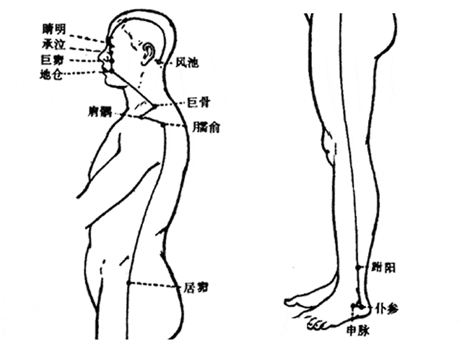 阳跷脉是人体奇经八脉 之一。“跷”,为足跟、跷捷、活动敏捷的含义,阳跷脉为足太阳膀胱经与足少阴肾经的支别。阳跷脉从下肢外侧上行头面,具有交通一身阳气 ,与阴跷脉共同调节肢体肌肉运动,故能使下肢灵活跷捷;卫气的运行主要是通过阴阳跷脉而散布全身,卫气行于阳,阳跷盛,主目张不欲睡,与阴跷脉交会于目内眦,因此具有濡养眼目和司眼睑开合的作用。阳跷脉主一身左右之阳气。有12个交会腧穴,起始穴位于足太阳膀胱经的申脉穴,止于足少阳胆经的风池穴 。