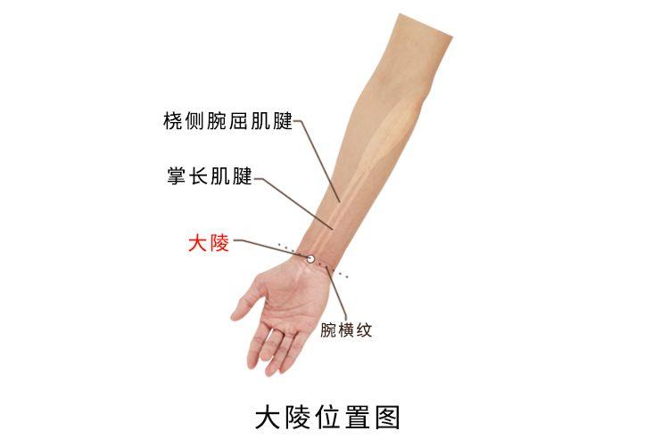 再来,从内关穴往下走二寸,就是大陵穴。大陵下针,像神门一样,对手掌方向下针,神门对着少府,大陵对劳宫穴的方向。临床上有个人左后脚跟痛,这时是不是下右手大陵?因为手掌弯起来就是后跟,这是膝盖。这是下针治足跟痛,在对侧取穴。你如果要下得更精准。可以用硬的筷子、找找看压痛点。当有压痛点时,你就从大陵对压痛点穿刺过去,这样会很精准。一针下去,痛就当场就去了,后跟就可以踩到地上去了。在手上扎的时候,病人的脚是踮起来的,像跳芭蕾舞一样。那怎么找呢?大陵穴不动,而是从大陵对痛的地方下针,没有固定的穴位。大陵穴是心包经的俞穴,属土。今年的夏至到年底的冬至,心包经是相火的,它的属性是火,大陵穴就是子穴。心包的实症在这下针。例如,有个女孩子来了,有乳房硬块,一看在乳中穴旁开一寸天池。在心包经上,是初症,会有剧痛。也有时候她己痛了三、四个月,可是她拒按。拒按就是中医讲的实症,实症的话不喜欢按,虚症的时候喜按,虚不单单是指人体虚,虚就是没有,它就喜欢你按,这是虚症。虚症出现时候下母穴。有可能好几个月都是实症。当有痛及红肿通通下子穴。
