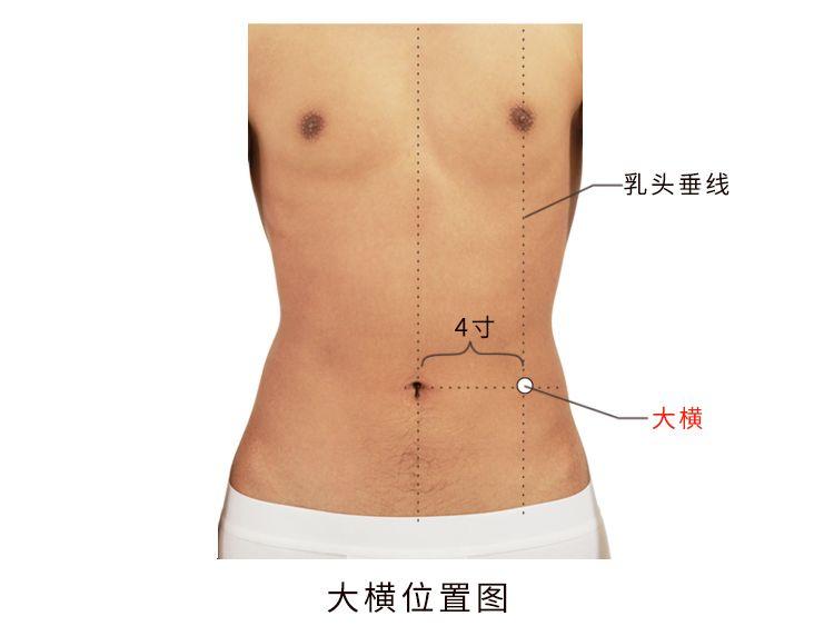 大横就是神阙外开四寸,外开二寸就是太阳经的天枢穴,再外开二寸是大横。大部分都是治肠胃方面,常看到这个病人泻利、拉肚子,都可以在这附近取穴。