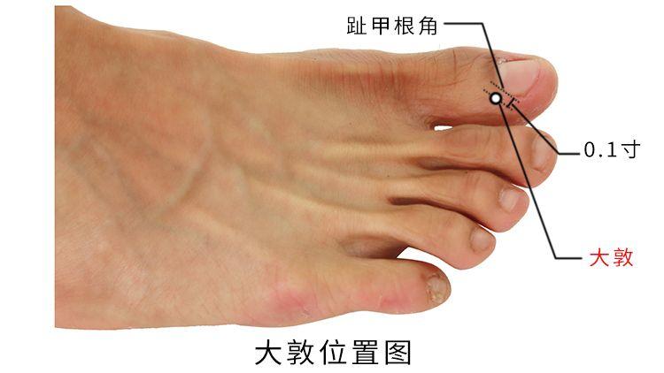 倪海厦老师:注:有疝气,肠子坠下来的时候。如果是左睾丸掉下来,你就扎右边的大敦。妇人月经来的量太多,止不住时,可用以止血。还有女人的子宫下垂,子宫掉下来,脱血出来。还有男人疝气。阴部的问题,像得了性病,有阴头痛、阴茎痛、小便痛等等,通通可以下大敦,尤其疝气效果很好。