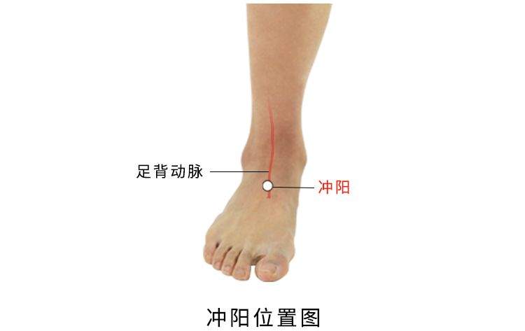 再来是冲阳,在解溪穴下二寸,找的时候不要硬找二寸、三寸,你用摸的。摸到动脉,动脉下就是冲阳,大约在解溪穴下二寸,冲阳穴是胃经的原穴。我们有手三阳足三阳,阳经上才有原穴,阴经上没有原穴。过去在《素问》来说,冲阳是禁针的,因为过去针很粗,像火柴棒那么粗。冲阳穴里面有个动脉,一下针就会扎到动脉。但现在针很细,你摸到冲阳脉时,先把脉拨开来,针就下去了。这是下针的手法。因为它是原穴,原穴补泻都可以做,实症、虚症通通可以治。有冲阳脉代表胃气还在。例如今天碰到一个病人是哑巴,问他饿不饿,他不会讲。你一摸冲阳脉还在,这个病人胃气还在。冲阳我们可以下针,用32号针,虚实都可治。你看书上写的胃经资料,很多都是发狂奔走、登高而歌、弃衣而走。因为是肠胃的病,大便不通,燥气会上冲,让人头昏过去。所以会跑到很高的地方,很燥热,就开始脱衣服而走了。我们介绍到伤寒时,知道燥矢是如何造成的,可以把它消导下来。中医有些地方很好玩,比如说,你看书上的丰隆穴,第三行,上面写"见鬼好笑",什么叫见鬼好笑,意思是没有什么事自己在傻笑。