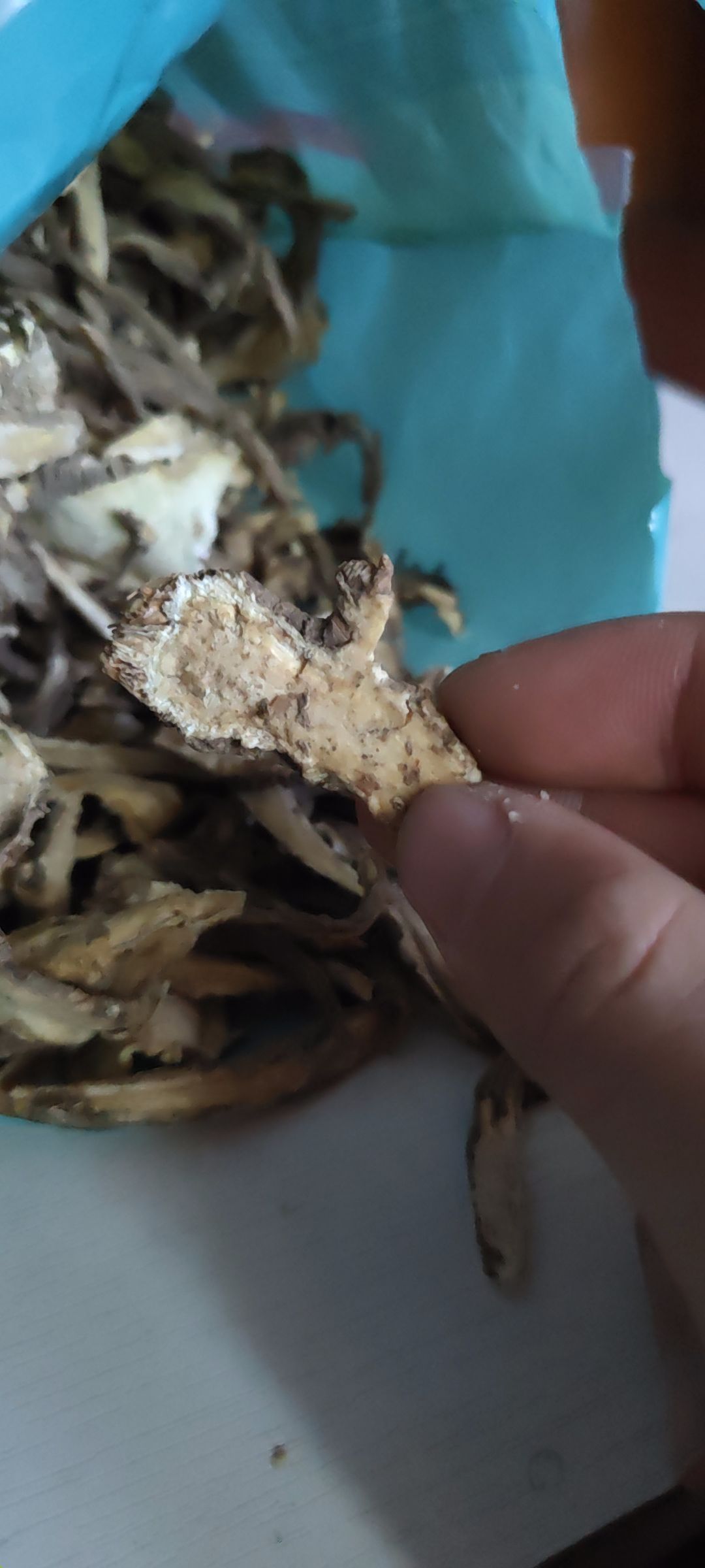 当归里面掺独活,当归还是熏硫的,味道很淡,可能是其他药厂提炼过的药渣。